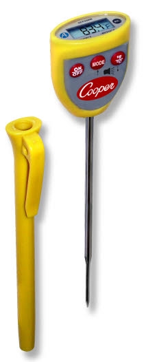 Our NEW DFP450W Digital Pocket Test with adjustable Temperature Alarm was specifically designed for the harshest foodservice environments. The Instrument can be programmed to provide a visual alarm (blinking display) once the set temperature is reached. The initial default alarm temperature is 140oF (60oC). Potentially hazardous mercury thermometers are often used to check the extreme water temperature of commercial dish water. Eliminate the risk of a mercury spill; the DFP450W stores the maximum heat registered and is waterproof. Guaranteed Accurate for Life means there is no need of field adjusting of calibration settings and no risk of introducing error into the instrument.